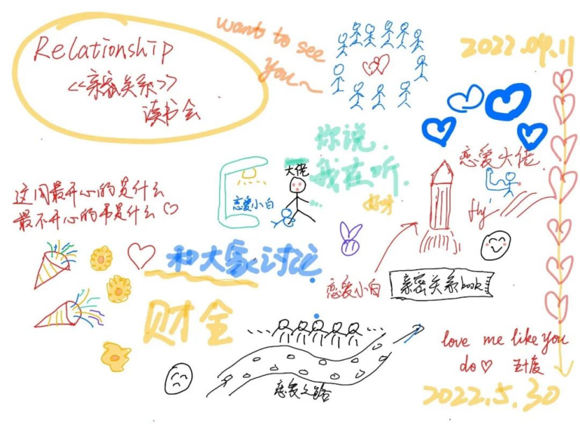 通过此次读书会,参与者与带领者均收获颇丰。本次读书会不仅仅局限于文字的交流和表达,还通过绘画来传达我们对读书会内容的理解,或者使用活泼生动的表情包分享对读书会的感受。