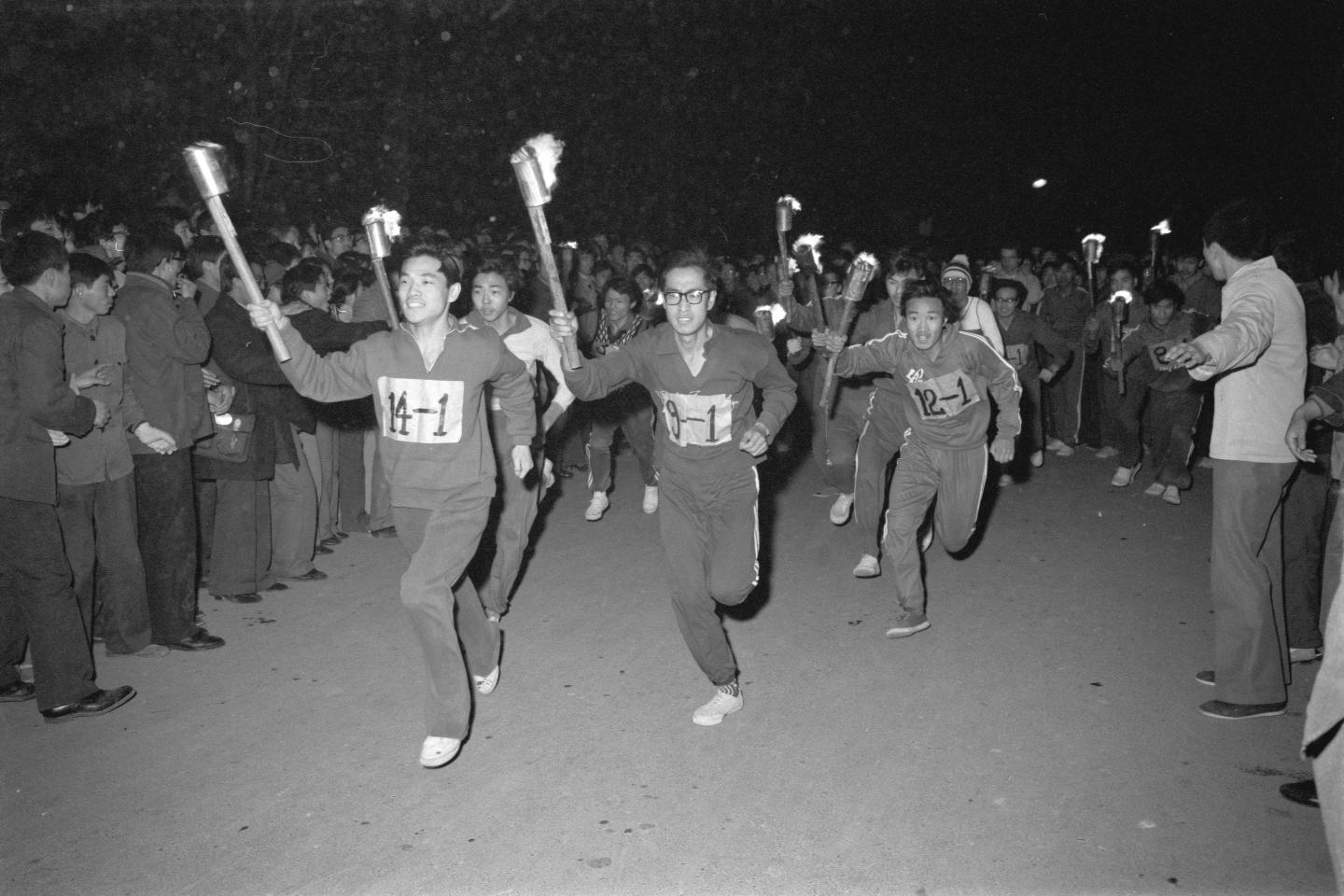 中国人民大学为纪念“一二·九”运动48周年,举办首届“一二·九”火炬接力赛(1983年12月9日摄)
