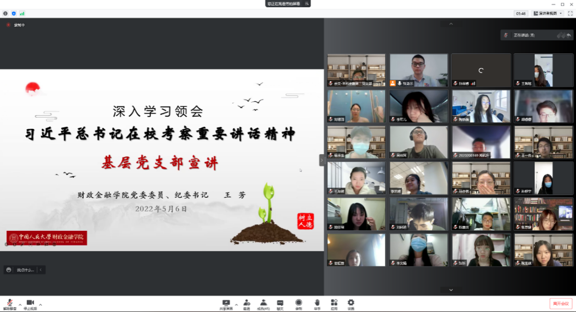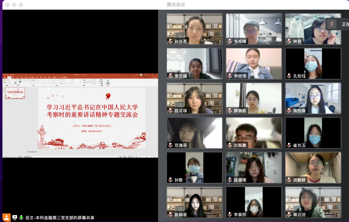 王芳副院长到本科金融第三党支部与本科金融第五党支部宣讲习近平总书记在中国人民大学考察时的重要讲话精神