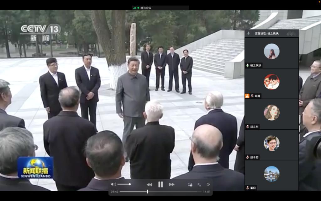 陈醒介绍习近平总书记考察中国人民大学的基本情况及师生座谈会的主要内容。随后,支部党员共同收看《新闻联播》相关报道。